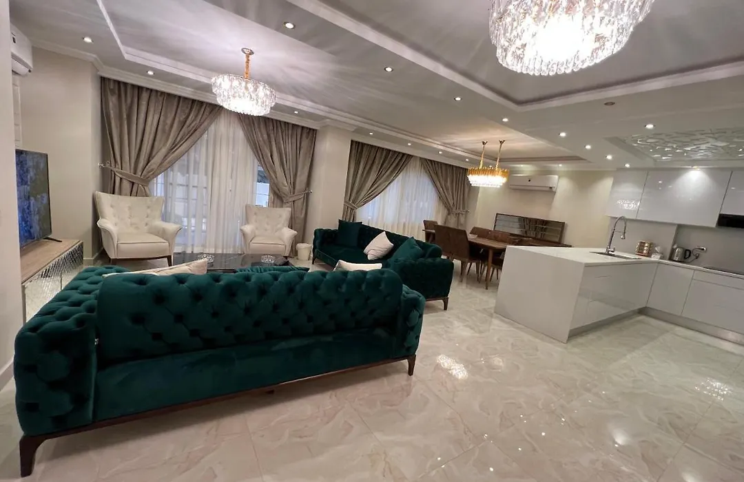 Luxury Furnished Duplex Apartment With A Private Garden includes self-catering facilities, such as an equipped kitchenette with a refrigerator, a stovetop, and kitchenware. Luxury Furnished Duplex Apartment With A Private Garden is approximately 40 minutes by car from El Giza railway station. This accommodation offers an indoor pool for relaxation and refreshment.